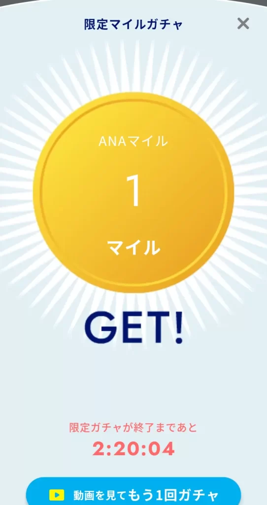 1日3時間まるまるガチャをするのは時間の無駄ですが、空き時間にちょちょっとやってマイルを稼げるので、ANAマイラーの皆さんにおすすめです。
