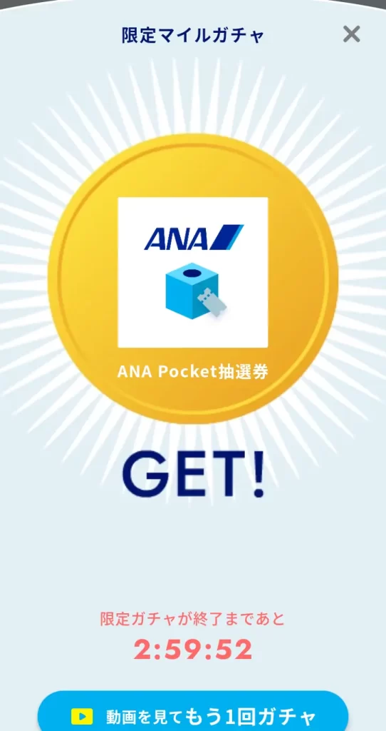ANAマイルが貯まる ANA Pocket の限定マイルガチャ。