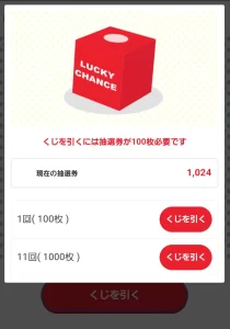 なんと、1000枚だとくじ引きを11回することができます。