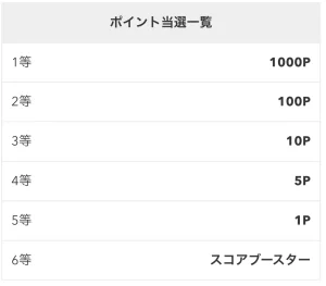 くじで獲得できるポイントは以下の通りです。