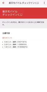 楽天チェックアプリでは対象施設にチェックインするとポイントがもらえますが、多くの施設ではポイントの額はくじで決まります。